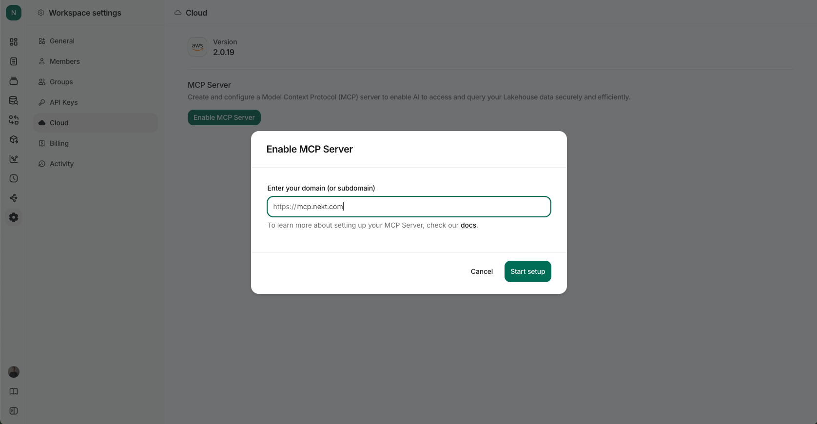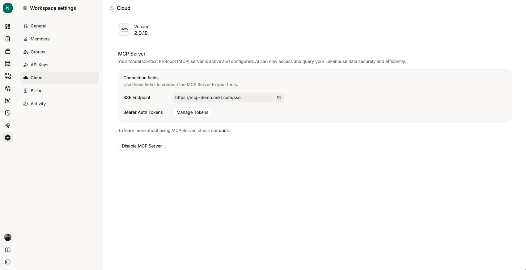 Your AWS costs will vary by region. For example, in Northern Virginia (us-east-1), the fixed cost is $34.00 per month. Here is a list of the services used:Step 1: Enable Your MCP Server in Cloud Settings
