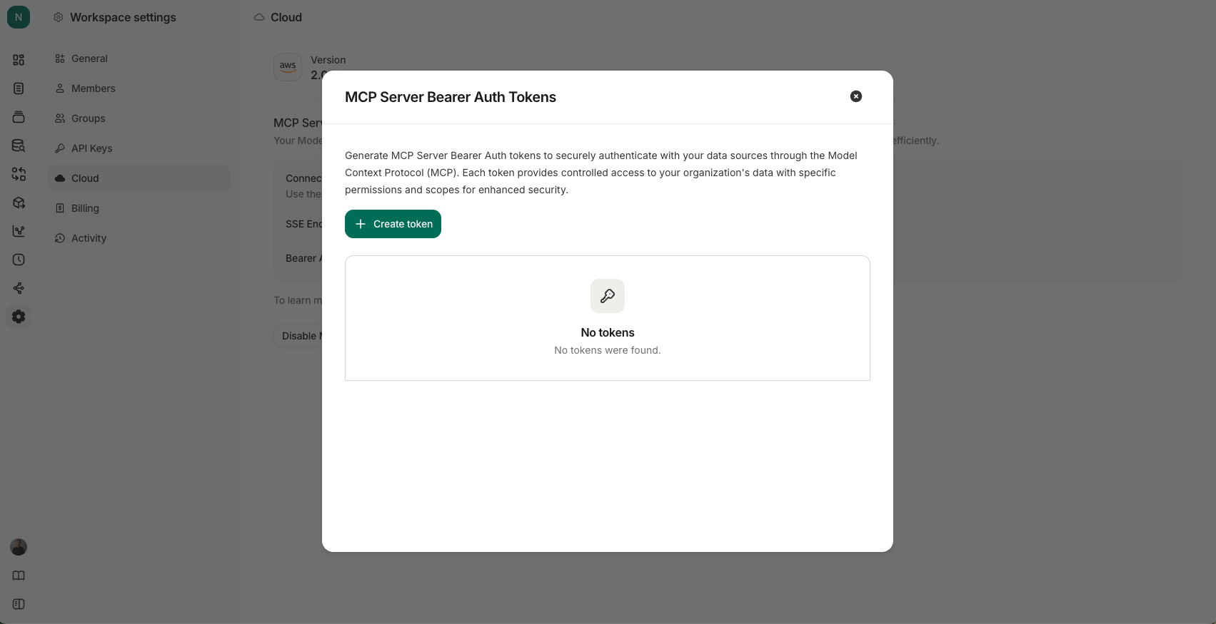 You can now create multiple tokens to access your MCP server. For each token, you can associate any number of tables. Table scope is further mentioned in “Available Tools” section below.