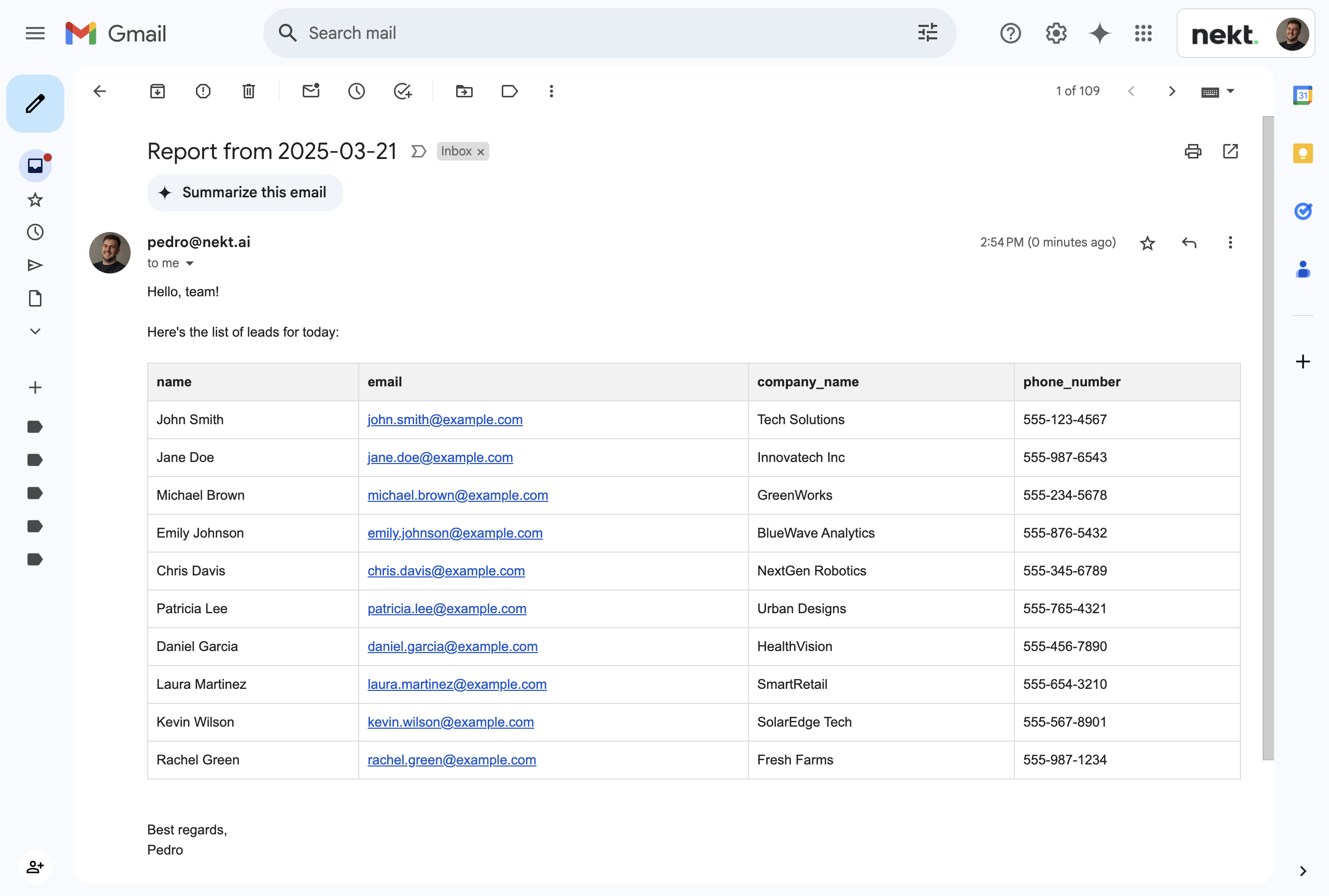 - Gmail Authorization: Authorize nekt with your Gmail account. Make sure you are doing it with the email address you want to use to send the email.