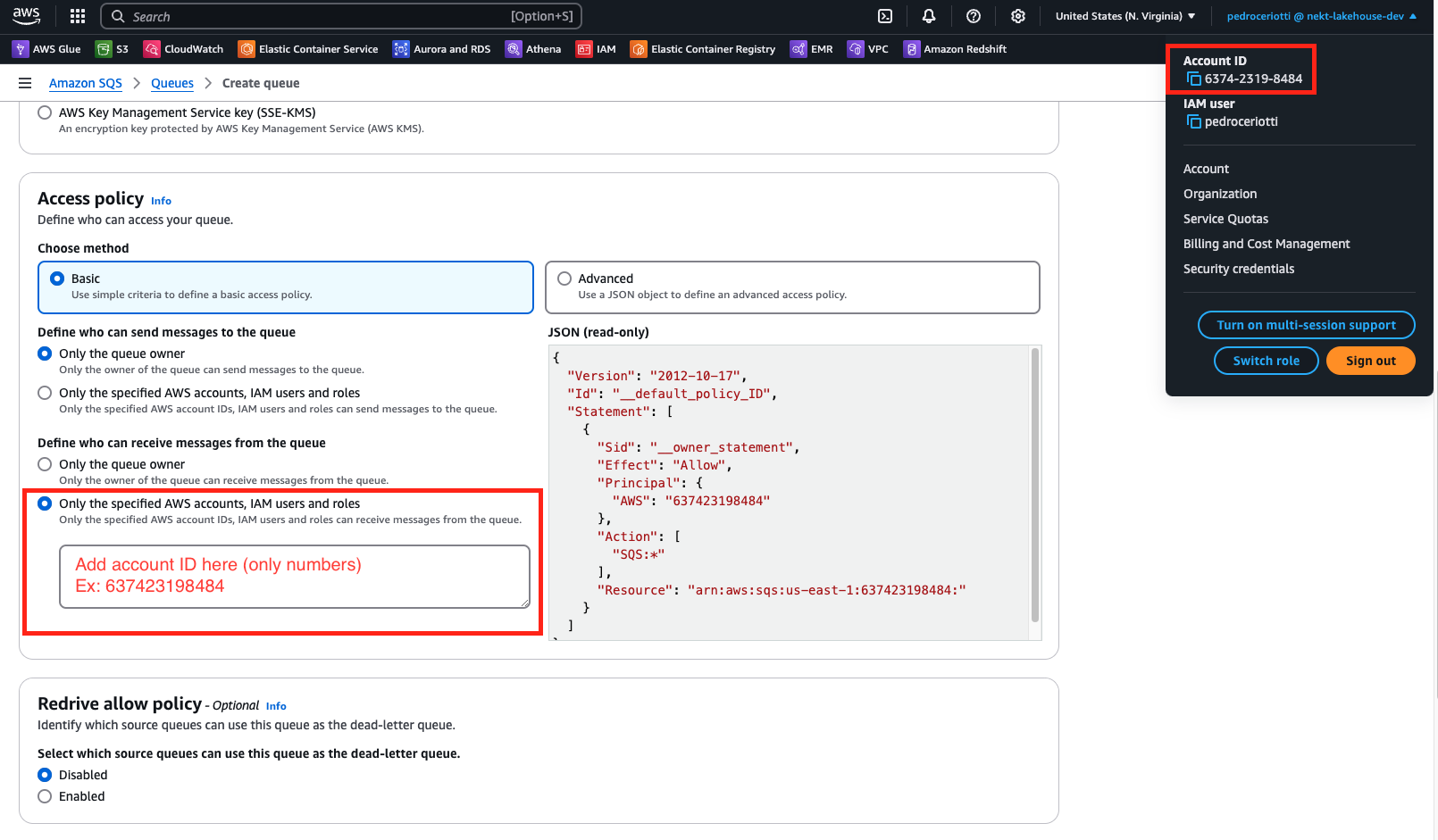 and add your AWS account ID (only numbers) inside the text box, as in the image below.